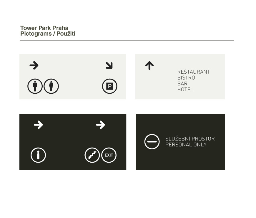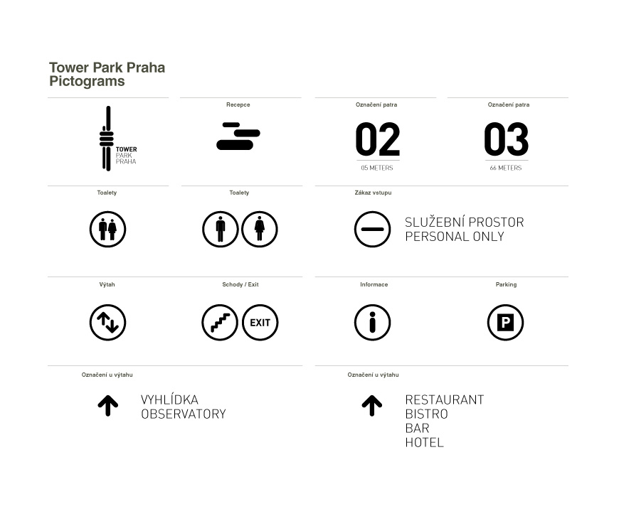 Orientation system design and Pictograms for a reconstructed TV Tower in Prague.